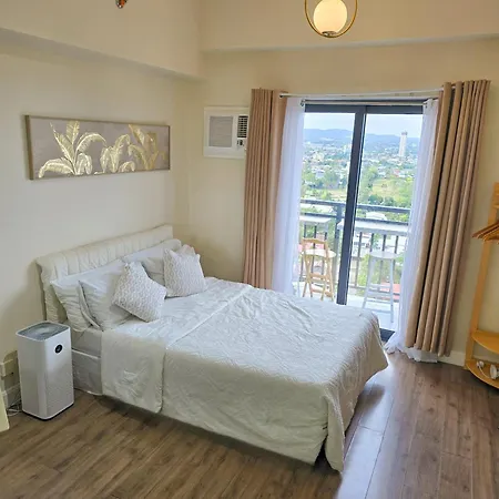 Cozy Cebu Studio Near It Park With Fast-Wifi, Balcony And Gym Access z widokiem na ogród dysponuje balkonem i w pełni wyposażoną kuchnią z klimatyzacją. Obiekt noclegowy oferuje 1 łazienkę.